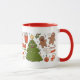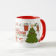 Groovy Hippie Retro Merry Christmas Santa Funny Personalised Name Coffee Mugs features a colourful vintage Christmas themed icons such as Santa Claus, Christmas trees, gingerbread people, wreaths, gifts and the text "Merry Christmas and happy New Year" in modern red script typography. Perfect for Christmas and holiday gifts. Designed by ©Evco Holidays www.zazzle.com/store/evcoholidays