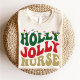 This T-Shirt features a Holly Jolly Nurse Christmas Party Design in a Groovy Style on White shirt. Best Christmas gift for Nurse.
