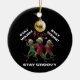 Get ready to sleigh the holiday tree with the quirkiest ornament in town! This eye-catching design features three funky lizards dressed in their winter best getting groovy under a golden Christmas ornament. With the playful quote "Stay warm, Stay weird, Stay groovy," this ornament is a full-on celebration of festive weirdness and cold-blooded charm.