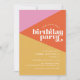 Bright, colourful birthday party invitations with retro-style lettering and a pink, orange and yellow colour palette. Customise with any age. Relaxed and fun invitations for retro-themed birthdays.