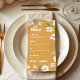 Serve your dishes in style with this groovy mustard floral wedding menu card. Featuring retro typography, warm mustard accents, and delicate floral illustrations, this design adds a fun 70s boho vibe to your reception tables. Perfect for rustic, vintage, or hippie-inspired weddings, these menu cards not only showcase your meal selections but also enhance your overall wedding tablescape aesthetic.
