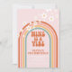 Retro inspired Nine is a vibe 9th birthday invitation with hippie style rainbow, daisies and boho fonts and colours.