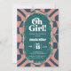 baby shower invitation, oh girl, retro baby shower, groovy baby shower, pink checkered, 70s style, wavy border, trendy baby shower, girl baby shower, pink and cream, checkered pattern, modern baby shower, star baby shower, baby girl, bohemian retro, pink aesthetic, groovy girl, whimsical invitation, checkered stationery, retro font