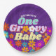 Groovy One Colourful Retro Floral Birthday Paper Plate