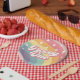 Add a finishing touch to your little one's birthday decor with these 70s themed rainbow birthday paper plates.
