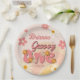 Groovy one retro daisy 1st birthday party personalised printed paper plates template , dusty pink retro daisy groovy one first birthday personalised table decor