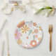 Retro inspired groovy one 1st birthday plates with 70's style flowers and boho fonts and colours.