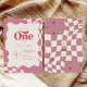 1st birthday invitation, groovy one, retro birthday, pink checkered, girl first birthday, groovy birthday theme, 70s birthday, wavy border, checkered birthday, first birthday girl, pink and cream, mod birthday, aesthetic birthday, retro font, our little love, bohemian birthday, whimsical birthday, pink birthday invite, first birthday party, groovy girl