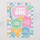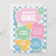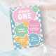 Retro hippie birthday invitaiton, preppy patch invitation, pastel smiles daisies groovy one first birthday invitation