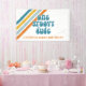 Groovy One Retro Style Stripes Birthday party banner with happy face and yellow, orange and blue.