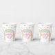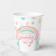 Groovy One Retro rainbow inspired first birthday paper cups with 70's style fonts and colours.