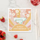 Groovy One Retro inspired first birthday napkins with 70's style daisies and boho fonts and colours.