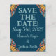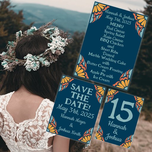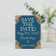 Groovy Orange Flowers on Deep Blue Save-the-Date Postcard