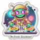 Get ready to party with this vibrant animated sticker featuring a funky alien DJ rocking the turntables! Adorned with a golden touch, this lively character radiates a groovy vibe against a light-coloured background, perfect for music-themed designs.