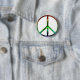 Unique peace symbol button pin in colourful shiny metal look design on a white background. To change the white background click on customise and then on edit and then on background to change the colour. A groovy retro symbol of peace and love!