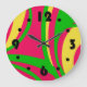 Psychedelic sixties style clock with groovy patterns and clashing colours. Perfect for hippies and flower children of all ages. Four asy to read large black numbers printed on face with dots to locate the rest. Image copyright 2012 by Margaret E. Cmelik.