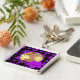 This premium photo template keychain in bright purple and black floral is fully customisable.