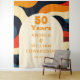 This groovy, colourful, retro, wavy boho 50th wedding anniversary photo booth backdrop can be personalised with your information in modern typography. Designed by Thisisnotme©