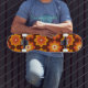 This is cute groovy retro boho floral pattern in orange, amber and beige over brown background. It's great looking skateboard