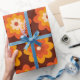 Groovy retro 70s boho hippie orange flower pattern wrapping paper
