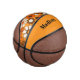 Groovy Retro 70s Floral Pattern Personalised Basketball. Nostalgic 60s 70s vintage-aesthetic flowers and 1970s colours. Fun and pretty, with a seventies vibe. Makes a great gift for sporty girls and women. By Kierkegaard Design Studio.