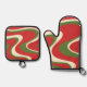 Groovy Retro Christmas Swirl Pattern Oven Mitt & Pot Holder Set