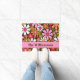 Groovy Retro Floral Colourful 60s 70s Flowers Pattern Pink and Brown Personalised Door Mat / Welcome Mat. Cute and cheerful, with a vintage 1960s 1970s vibe. By Kierkegaard Design Studio.