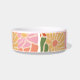 This is a heavy, durable bowl decorated with Tibbies of many colors, the perfect size for hungry/thirsty Tibs. The design is interesting and printing clear.