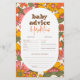 A retro baby advice & predictions card to match our "Hello Baby | Groovy Retro Flowers Boho Baby Shower" invitations. View the collection linked on this page for matching items. This design features a groovy floral pattern background with a white oval overlay in the centre. The warm vintage colour palette of brown, yellow, orange, cream, and green hues gives a real 70s touch. The flowery daisy pattern is a hand-drawn cartoon-style flower power pattern with bold colours and strong outlines to match the seventies hippie style. Inside the oval frame, there is space for guests to write their birth predictions, resemblance predictions, and advice for the new parents.