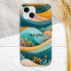 Add a retro flourish to your phone with this stylish case. Featuring a groovy, vintage-inspired design, this case showcases flowing wavy lines and curves in stunning teal, peach and yellow hues, reminiscent of rolling hills in a dreamy countryside landscape. Combining nostalgia and contemporary style, this case is for anyone who loves bold swooshes of colour and quirky designs. Personalise it with your name for a stylish finishing touch.