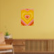 Retro heart burst design. Heart layers in orange, yellow, pink. Groovy retro heart gifts, home decor.