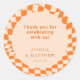 Groovy Retro Orange Check Wedding Custom Thank You Classic Round Sticker