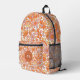 Groovy Retro Orange Florals Monogram Printed Backpack