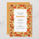 Groovy Retro Orange Hippie Flowers Bridal Shower Invitation