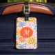 Groovy Retro Pattern Floral Monogram Luggage Tag