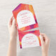 Groovy Retro Pink and Orange Arch Wedding All In One Invitation
