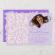 Get ready to celebrate in style with this Groovy retro-cool bridal shower invitation! Featuring a fun and playful design, this invitation showcases bold, groovy typography in a retro lavender background, giving it a nostalgic yet trendy vibe. The top right corner features a cut-out heart shape with a photo, adding a personal touch to the invite. The stylish script font highlights the bride-to-be's name, making her the star of the show. Perfect for a bridal shower that's full of personality and flair, this invitation sets the tone for a memorable celebration. All the colours are editable to match your party theme!
