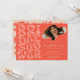 Get ready to celebrate in style with this Groovy retro-cool bridal shower invitation! Featuring a fun and playful design, this invitation showcases bold, groovy typography in a chic peach and orange background, giving it a nostalgic yet trendy vibe. The top right corner features a cut-out heart shape with a photo, adding a personal touch to the invite. The stylish script font highlights the bride-to-be's name, making her the star of the show. Perfect for a bridal shower that's full of personality and flair, this invitation sets the tone for a memorable celebration. All the colours are editable to match your party theme!