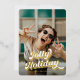 Groovy retro typography that says "Jolly Holiday". Customise these shiny gold foil greeting cards with a personalised photo and custom message on back.