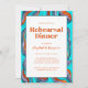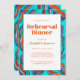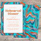 Groovy Retro Wavy Teal Wedding Rehearsal Dinner Invitation