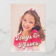 A retro style photo card design featuring rose gold typography that says "Hugs & Kisses" and a personalised Valentine's Day greeting with signature.