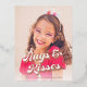 A retro style photo card design featuring rose gold typography that says "Hugs & Kisses" and a personalised Valentine's Day greeting with signature.