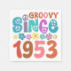 Birthday gift idea or birthday party supplies for cool hippies celebrating a milestone age, with lots of colourful psychedelic flowers and peace signs.