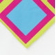 Bright and groovy throw blanket with neon coloured squares in pink, sky blue and yellow-green. Customise the colours and name!