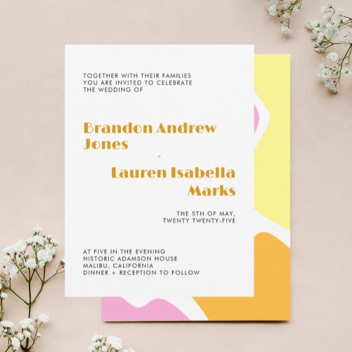 Get the party started with this groovy sunset inspired wedding enclosure card!