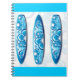 Show off your love for surfing. 3 groovy surfboards lined up waiting to hit the waves. These sky blue surfboards are decorated with a cool sixties retro flower theme. Evokes a sense of fun and whimsy.