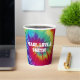 It'll be a groovy good time with this fun 1960s theme tie dye paper cup. A rainbow tie dye swirl background sets off the white retro looking text. Use for a child's or adult's birthday party, bachelor or bachelorette party, or any retro event. Available with matching items.