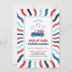 Get ready to celebrate Independence Day with a backyard BBQ! This 4th of July party invitation features a bold retro design with a wavy striped background and a classic blue truck loaded with fireworks in patriotic red, white, and blue colours. Personalise it with your party details for a festive and unique touch. Available as printed invitations or a convenient digital download, it’s the perfect way to invite your friends and family to join the fun!