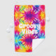 Fun sports towel featuring a colourful retro tie dye background with customisable hippie "groovy vibes" text.