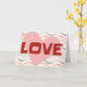 Original artwork featuring my original digital creation of a pink heart, styled with an asymmetrical shape and technique. It was then placed on a vintage wave pattern in distressed matching tones for an artsy appearance. The front of the card states, in big red letters "LOVE" and the inside of the card states "That is all. Seriously, I could not love you more than I do at this moment!" for a fun and sweet love sentiment to the special one in your life.